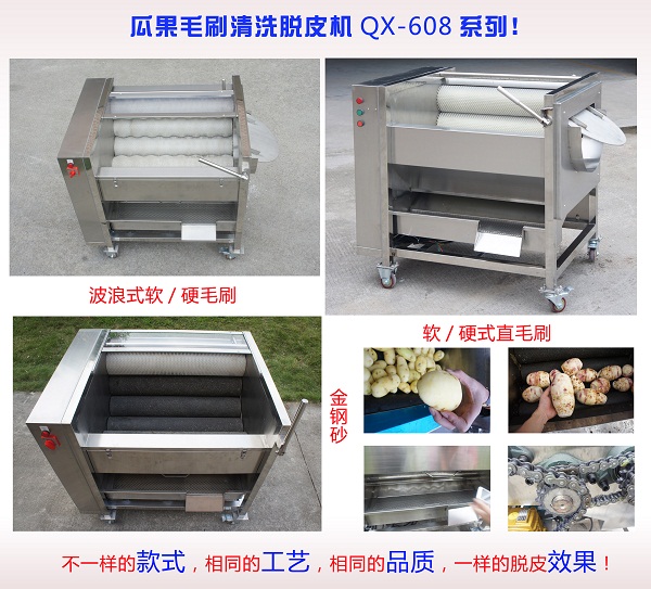 瓜果脫皮機/瓜果清洗脫皮機/瓜果毛刷清洗脫皮機QX-608新款(視頻)