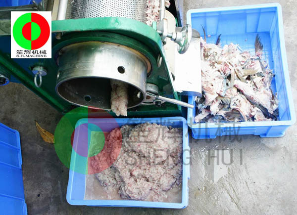 - 產品優勢: 工作原理:人工把待加工的魚先去掉魚頭和取出魚肚中的內臟;對大魚,則需將魚剖分成兩半,漂洗干凈(避免采出來的魚漿被內臟及魚血污染)。隨后將魚片投入到料斗內(魚的剖分面朝向采取筒,背部貼近橡膠帶),魚在橡膠帶的帶動下進入采取筒與橡膠帶的擠壓區,在橡膠帶與采取筒之間的擠壓力的作用下,魚肉被擠壓通過采取筒上的小孔進入采取筒內。